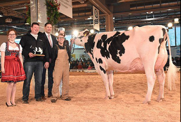 Wyndford Windbrook Erle 6 from Baltschanahof Holsteins and D. Balestra has wont he Grand Championship at the Holstein Show in Trier, Switzerland! Erle 6 is an incredible Windbrook from 3 generations of EX-95 point cows, her grand dam is none other than Field Of Dreams Formation Erle hereself! Click further for more pictures taken at the show!